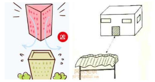 【描述】住家门口会有停车棚一类的建筑,而波浪状遮雨顶棚就会给一楼的住家造成一个“刀刃煞”。