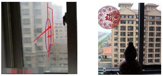 【化解】可在玻璃窗贴上半透明的磨砂胶纸,再把明咒葫芦两串放在窗边左右角,加上一个木葫芦,便能化解普通的反光煞;反光较弱者则不必加木葫芦,反光强者要多安放两串白玉葫芦五帝古钱便可化解。或者用凸面镜或麒麟踩八卦来化解。