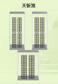 【描述】住宅大门面对两栋大楼中间的夹缝,就是犯了“天斩煞”。“两楼相夹是天斩,楼越高时越凶险。”