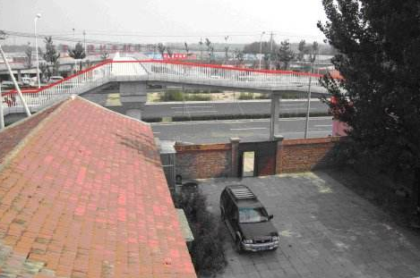 【描述】一条自高而下的天桥常有弯斜的去势,天桥为虚水,斜去而水走,是泄财象,此为天桥煞。