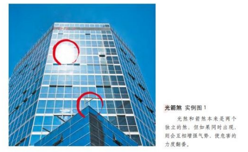 【描述】凡因阳光、水面、玻璃的反射而住宅被照射,则称之为反光煞。