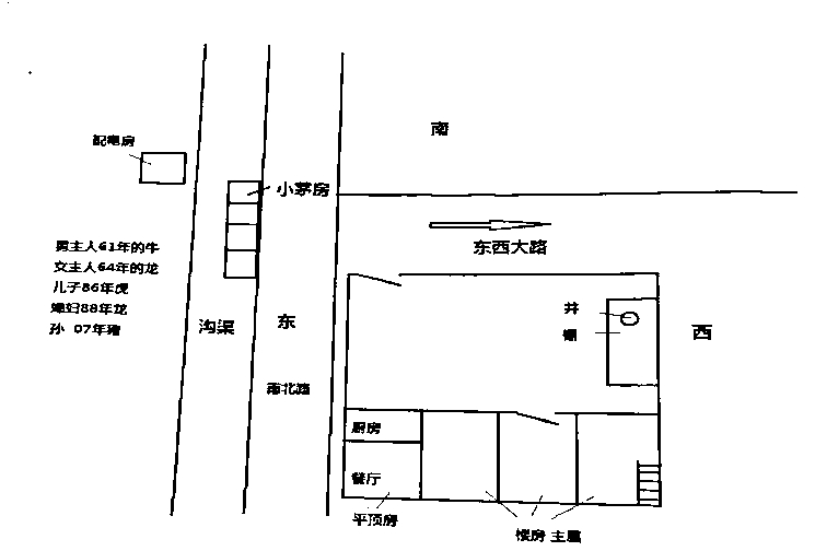 下图就是许女士画的自家户型图。看了这图,我说道:“你家不旺财啊,你儿子自打09年以来什么事也干不了何。许女士说道:“是的,他这几年一分钱不赚尽花我的钱不谈,整天还不务正业,玩。”