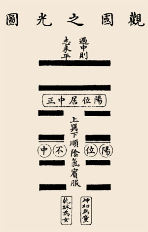 《彖》中主要强调的是观卦的卦义,伟大庄严的形象显现在君王身上时,臣民百姓便顺从命令,并使君令深入人心。君王以中正的形象感化万民,社会的中正之风也就形成了,这主要是强调领导的形象问题和表率作用。占得此卦者,在单位里一定要注意自己的穿着打扮,注意自己的言行举止,所谓上行下效,你想要下级做到的,你自己首先要做到。