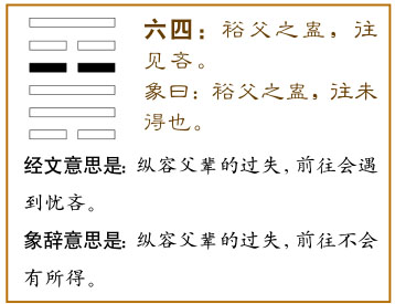 蛊卦第四爻,爻辞:六四:裕父之蛊,往见吝。爻辞释义