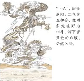坤卦第六爻,爻辞:上六:龙战于野,其血玄黄