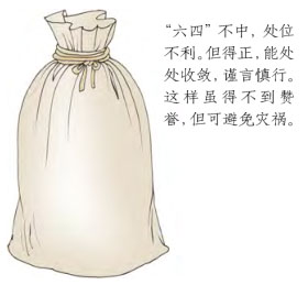 这里指出:“扎起口袋,没有灾难也没有称誉”,说明小心谨慎从事,是不会有害的。此爻所对应的事例就是纣王滥杀无辜之后,再无人向纣王进言献策,人人都紧闭嘴巴,不再自讨苦吃,最终免于灾祸。