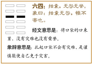 爻辞:六四:括囊,无咎,无誉。