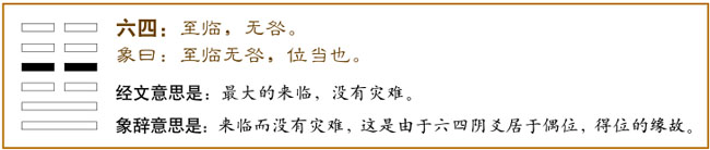 临卦第四爻,爻辞:六四:至临,无咎。人生启示