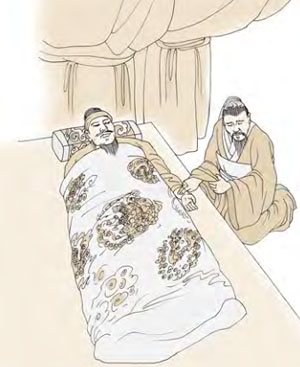 六五爻得了病,这是怎么回事呢?对此,虞翻的解释是:“坎为疾,坤为死,震为反生,位在震中,与坤体绝,故‘贞疾,恒不死’也。”意思是说,豫卦上互卦为坎,坎含有疾病的意思,所以六五处于疾病的边缘。又由于坤为归藏代表死,可是豫卦的上卦为震,与坤没有一点关系,震有起死回生的含义,六五处于震卦的中位,所以他患有疾病,但不会因此而死亡。但六五得的是什么病呢?是心病。为什么这样说呢?因为坎便代表心病。六五的心病便是对九四的心病。打个比方说,九四是一个男人,众阴爻是他的五个妻子,有一个妻子在家里处干领导地位,凌驾在丈夫之上,这个妻子便是六五爻,为什么六五会有心病呢?因为丈夫更爱六二与六三这两个妻子,有权势的六五自然会吃醋而生心病了。可是由于六五居中,能够做到以中庸之道持家,所以她尽管受了心灵的伤害,但还不至干因此而丢掉性命。不过这种醋劲也使她徘徊在生与死的边缘。若是占问身体健康状况,则意味着会生病,但病小致死。